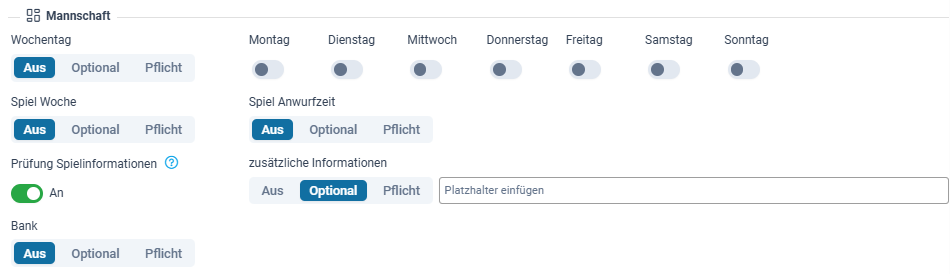 Müssen die Mannschaften einen Spiel-Wochentag auswählen, können die verfügbaren Wochentage entsprechend eingeschränkt werden.