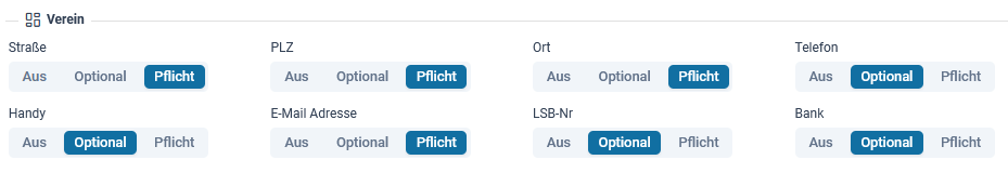 Der Bereich "Verein" wird nur bei aktiver Vereinsstruktur angezeigt.