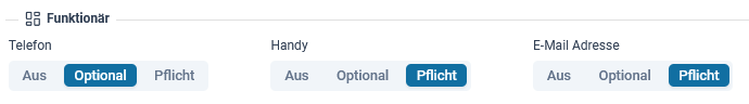 Der Bereich "Funktionär" wird nur angezeigt wenn die Vereinsstruktur aktiv ist.