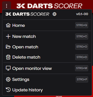 The update history (news in Darts Scorer) can be viewed via the menu: